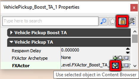 Set the same X and Y coordinates for VehiclePickup, FXActor, and StaticMesh. Change the following properties in the VehiclePickup: