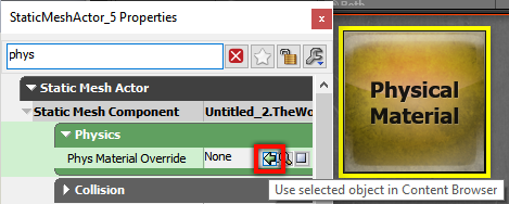 Assign to a Static Mesh Actor or Blocking Volume’s Phys Material Override slot with the green arrow